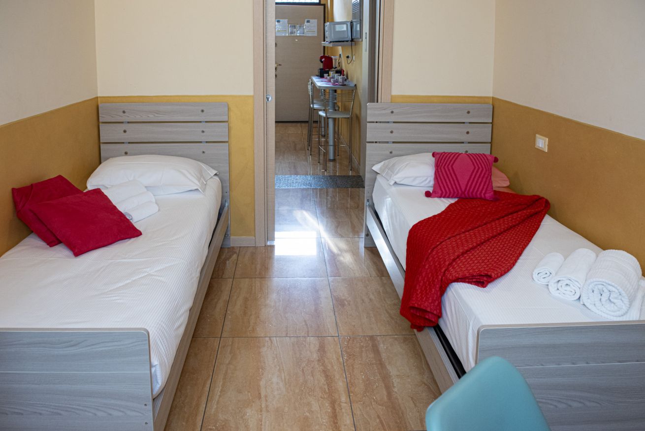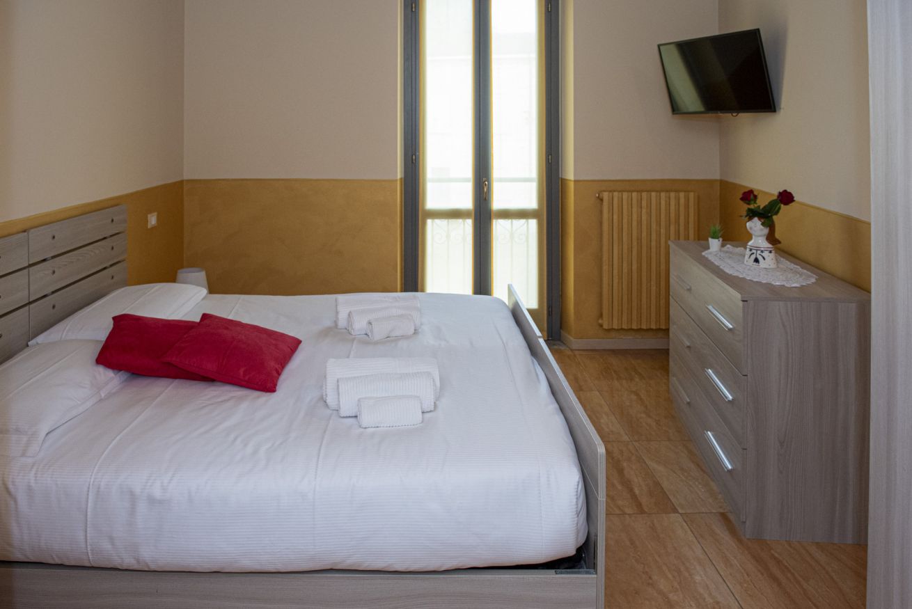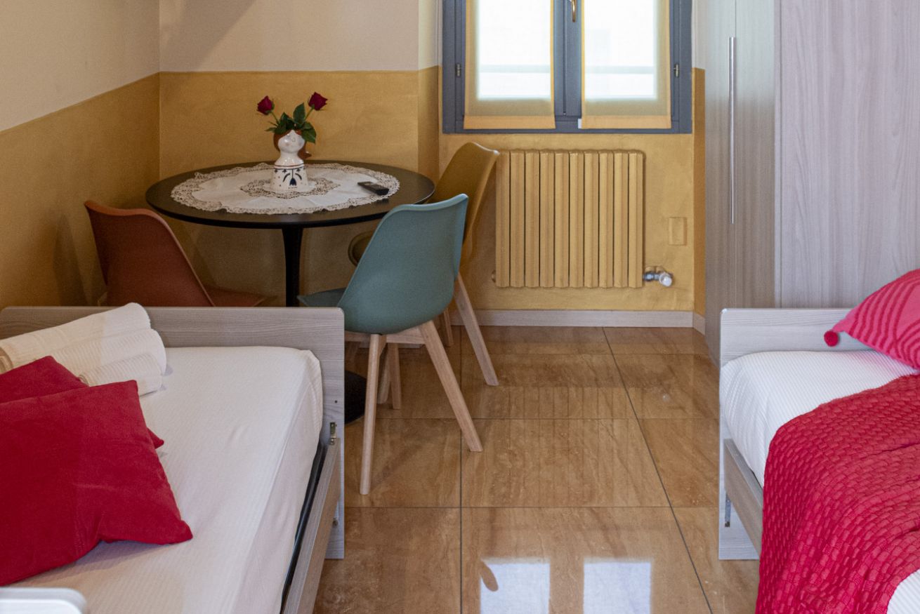 L’appartamento dispone di ingresso indipendente e offre una soluzione abitativa confortevole e funzionale, ideale per soggiorni brevi. Si affaccia su una piazza, di fronte alla chiesa. È composto da una cucina attrezzata, due camere da letto e un bagno, con spazi pensati per garantire praticità e relax. In entrambe le camere è presente una TV a schermo piatto. In base alle esigenze degli ospiti, è possibile predisporre 4 letti singoli, oppure un letto matrimoniale in una camera e due letti singoli nell’altra.